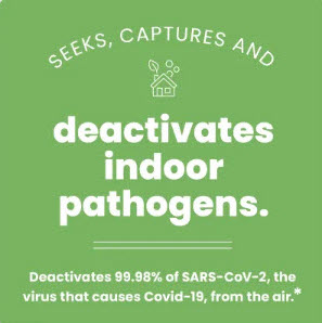 In addition to reducing volatile organic compounds (VOCs), allergens such as pollen and pet dander, and odors caused by mold, bacteria and other pollutants, it has proven to inactivate 99.98% of SARS-CoV-2 from the air.*